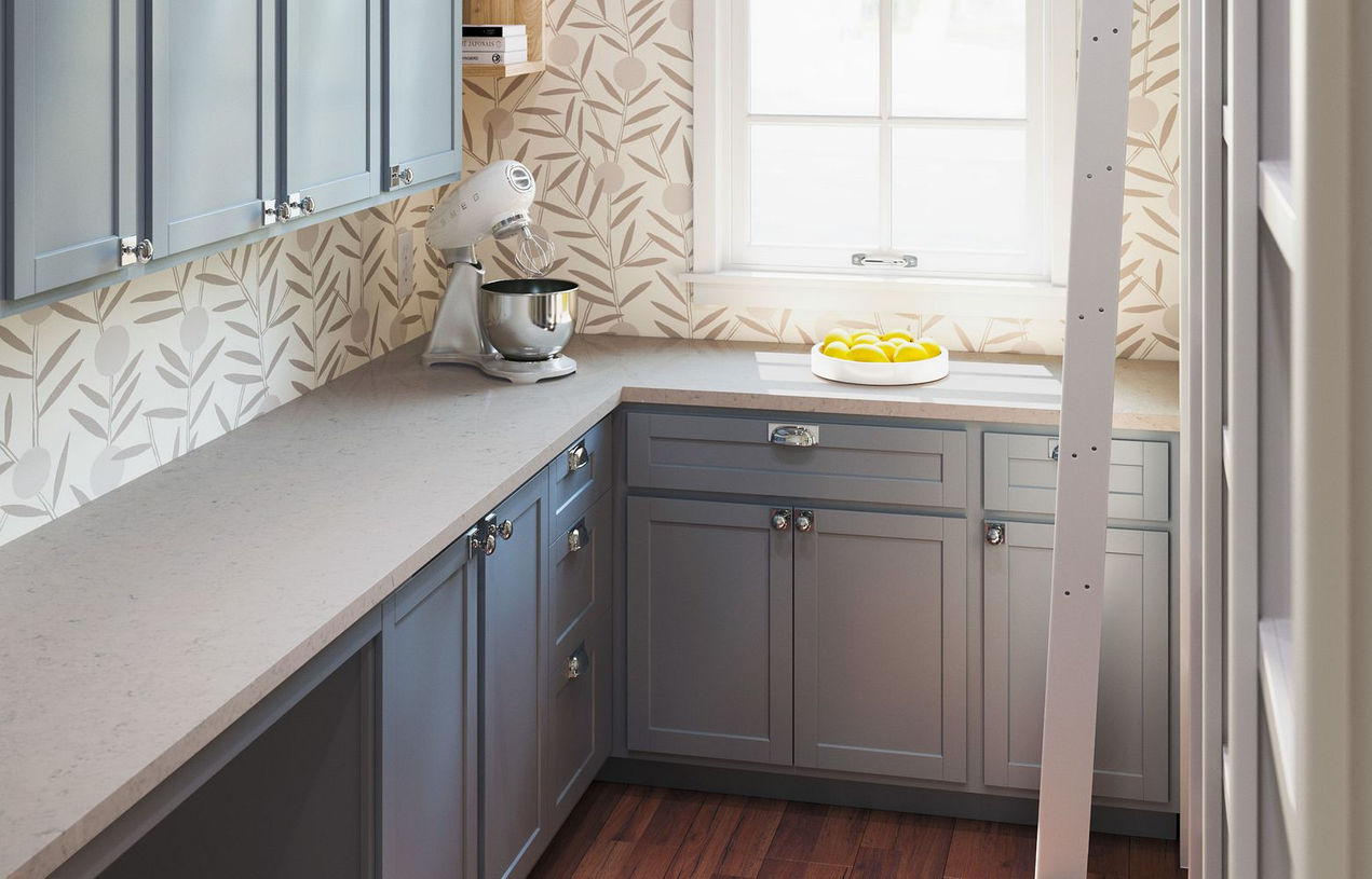 This design sample is a small select cut from a slab; it does not fully exhibit all the design characteristics of the final installed product. Cambria is pure natural quartz. Variations in the natural quartz stone color, pattern, size, shape, and shade are unique and inherent characteristics of this product. Cambria is not a seamless product; seams are visible. Where there are seams, the product pattern and shade will change. These variations do not affect performance and do not qualify for product replacement. Cambria Matte® finish will show surface markings caused during normal use, which are easily removed by simply washing with a soft cotton cloth and warm water; use a mild soap if desired.
