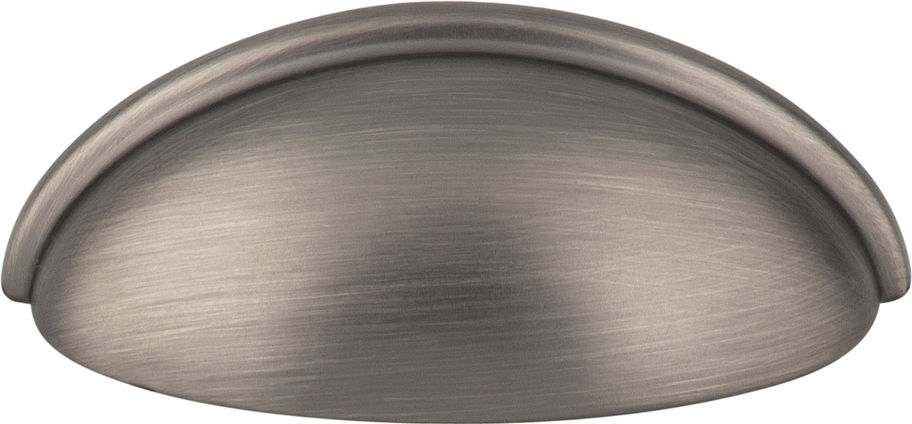 The smooth, familiar styling of this 3-11/16" overall length Brushed Pewter cup pull from Florence will bring warmth and casualness with a touch of to your space. This collection from Elements features cup pulls with a coordinating knob in eight additional finishes that will blend with a variety of design styles. Each item is individually wrapped to protect the item from damage. Attachment hardware is included. . . .Read More