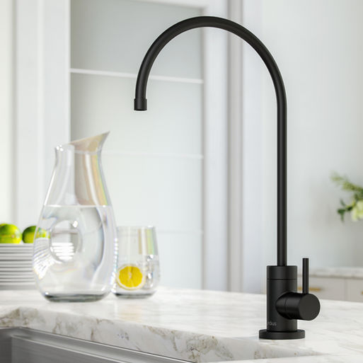 Get pure, fresh filtered water on demand with the Purita stand-alone beverage faucet made from 100 percent lead-free brass. A sleek contemporary design makes this cold water tap a stylish addition to any kitchen or bar/entertainment area, with no need to attach a bulky external filter. Purita is designed to connect to a range of concealed under-counter water filtration systems, including simple filtration systems, Reverse Osmosis, Alkaline Ionizer, Activated Carbon, and UV Filters (not included). The slender gooseneck spout is perfect for filling glasses, pots, and reusable water bottles, and rotates 360 degrees for complete sink access. Beautiful both inside and out, Purita is constructed out of solid brass for maximum durability, with lead-free brass waterways that keep filtered water out of contact with contaminants. The universal design complements a range of décor styles, and pairs perfectly with any Kraus kitchen faucet for a cohesive look. Complement your main kitchen faucet with a choice of finish: Purita is available in Chrome, Matte Black, Brushed Gold, Brushed Brass, Spot Free Antique Champagne Bronze, and fingerprint-resistant Spot Free Stainless Steel. . . Read More