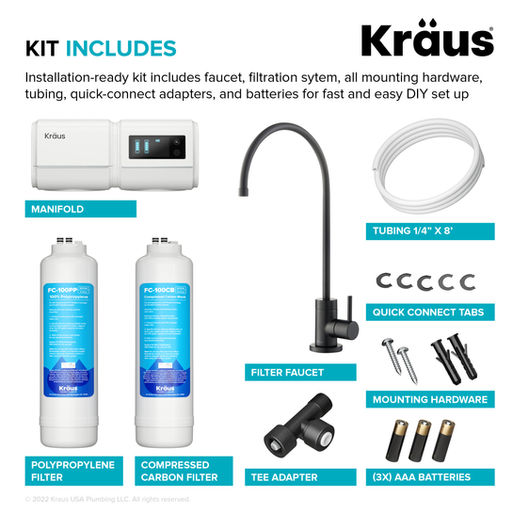 KRAUS Purita 2-Stage Under-Sink Filtration System with Single Handle Drinking Water Filter Faucet in Matte Black