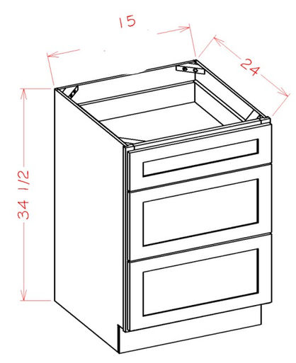 Us Cabinet - 3 Drawer Base - 15" W x 24" D x 34.5" H