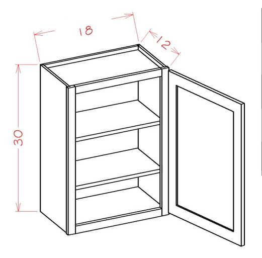 Us Cabinet - Wall Cabinet 1 Door 30" High Model - 18" W x 12" D x 30" H