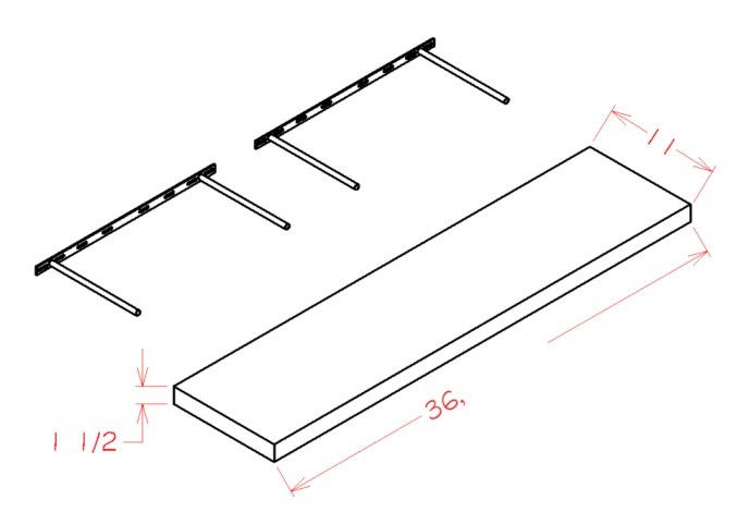 Us Cabinet - Specialty Walls - Floating Shelves 36" W x 1 1/2" H x 11" D