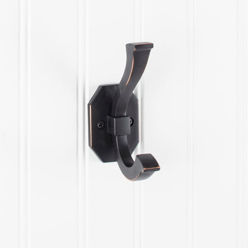 Perfect for entryways, with its raised emerald backplate and gently tapered double prongs, this Brushed Oil Rubbed Bronze hook is exactly what your guests need to hang their jackets and handbags. Available in three finishes, and weight tested to hold up to 35 pounds, this hook is individually packaged to prevent damage. Each package includes mounting screws and easy to follow installation instructions. . . .Read More