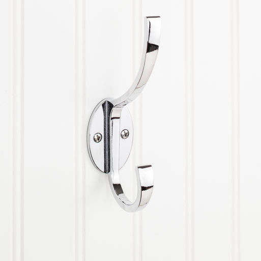 The gentle curve of this flared transitional Polished Chrome double prong hook from Elements is sure to provide an abundance of fashion and function for any space. Great for hanging clothes, jewelry, or robes, this hook is available in three beautiful finishes. Each hook is weight tested to hold up to 35 pounds and individually packaged to prevent damage. Packaging includes mounting screws and installation instructions. . . .Read More